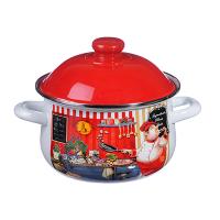 Кастрюля объемом 3,6 л из углеродистой стали с эмалированным покрытием белого цвета, снаружи декорирована красочной деколью, укомплектована крышкой, подходит для использования на всех типах плит, включая индукцию.