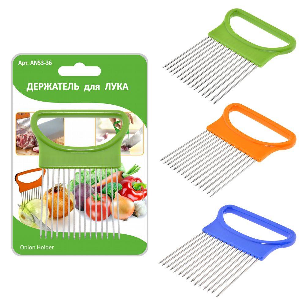 Лук – не только полезный овощ, но еще и пряная вкусная добавка к жареным, вареным, тушеным блюдам и салатам. При этом нет никого, кто любил бы резать лук, он постоянно выскальзывает из рук, и чем дольше вы его режете, тем сильнее начинают слезиться глаза. Порой, чтобы нарезать луковицу идеальными кусочками, требуются специальные навыки и особая сноровка. Держатель для лука решит эту задачу.