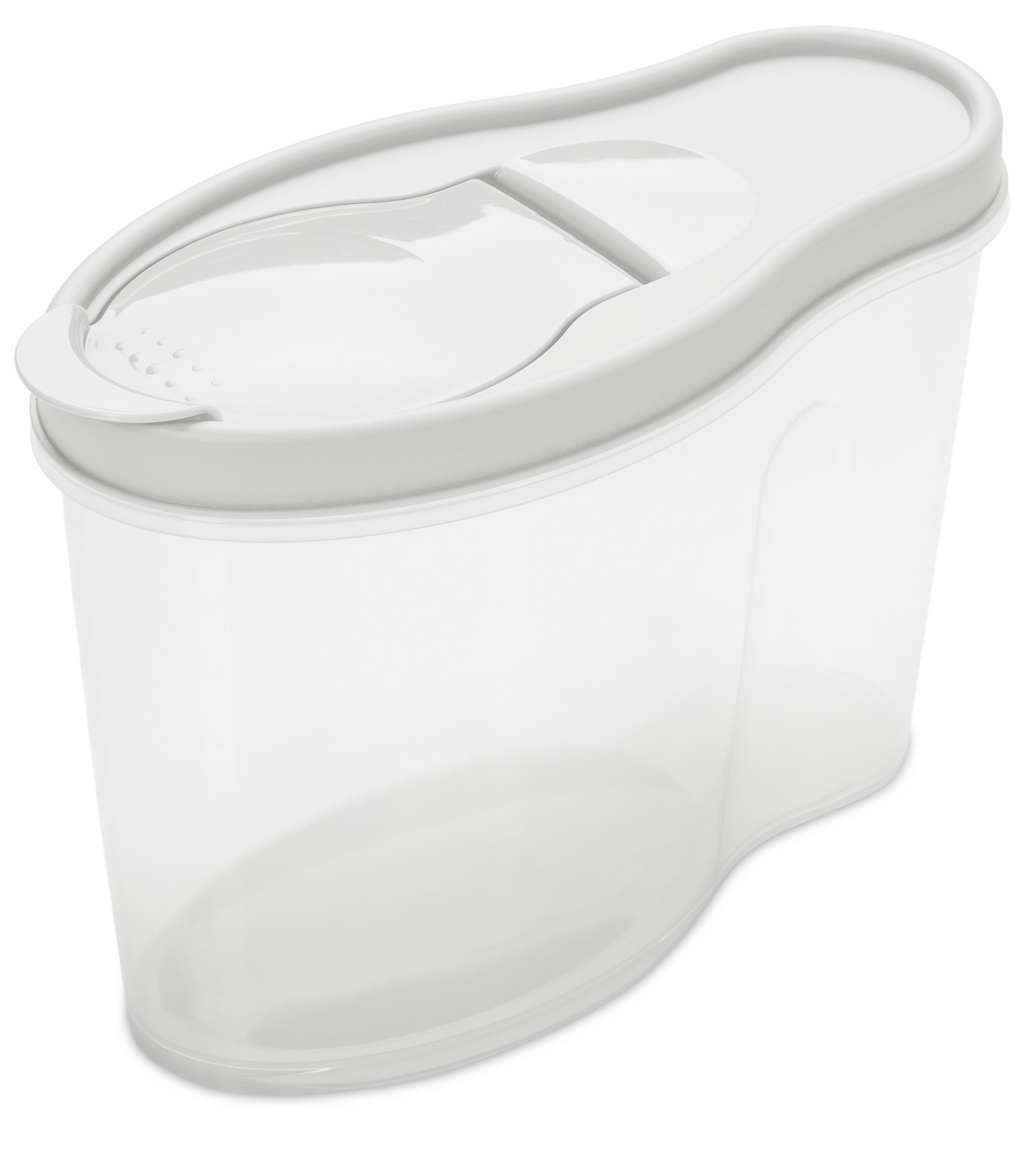 Контейнеры для сыпучих продуктов Альто предназначены для хранения различных круп, муки, специй. Оригинальная форма контейнеров и возможность штабелирования позволяют разместить их максимально компактно, не загромождая место на полке. Плотная посадка крышки исключает случайное просыпание содержимого, не пропускает запахи, и продукт не выдыхается. Клапан крышки надежно фиксируется в открытом и закрытом положении. Объём - 1,4л.